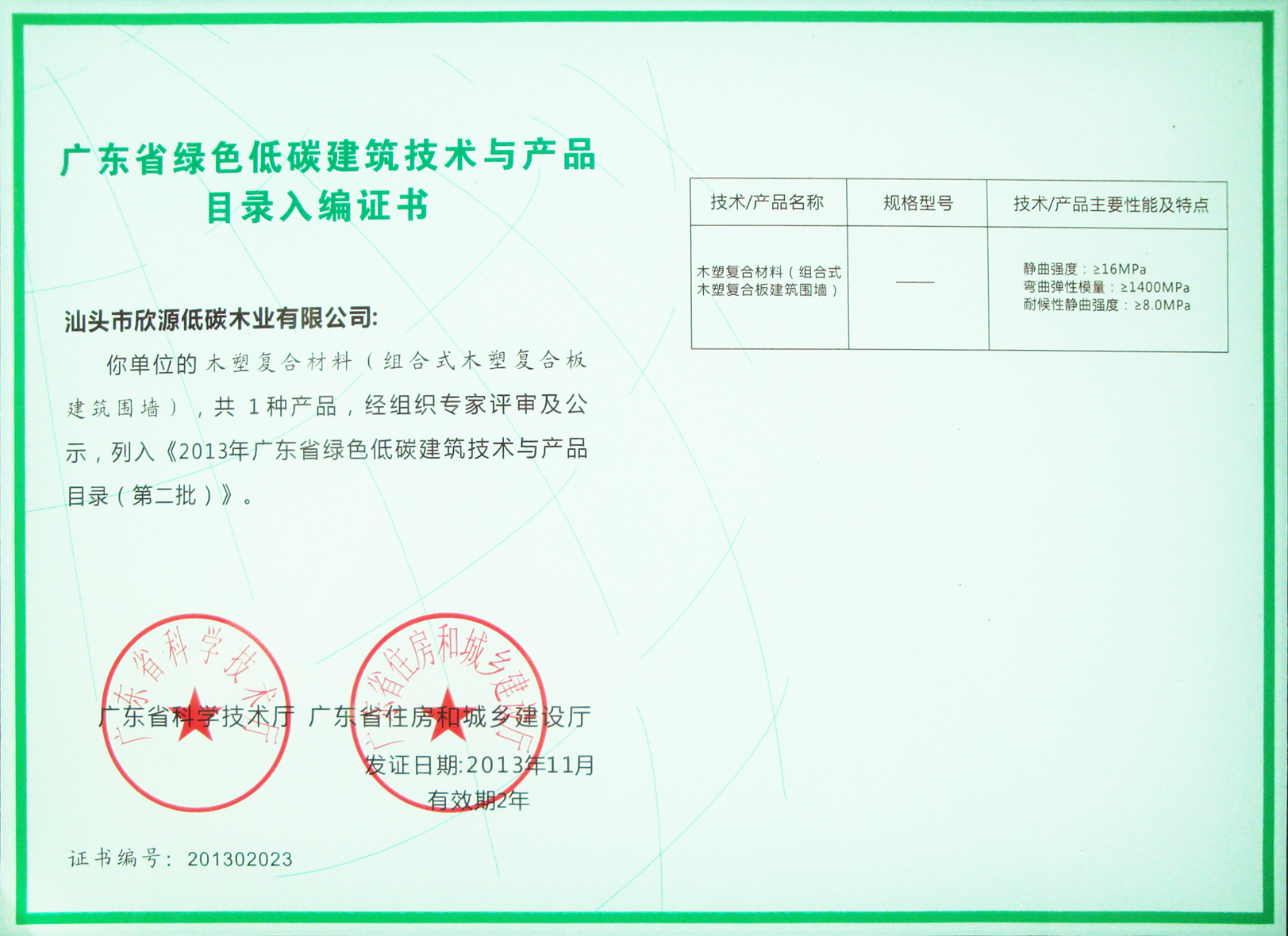 公司首款装配式木塑围挡面世,获得了汕头市住建局、汕头市安监站的认可与推广。公司装配式木塑围挡被列入《广东省绿色低碳建筑技术与产品目录》。