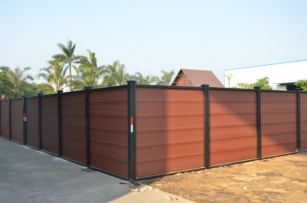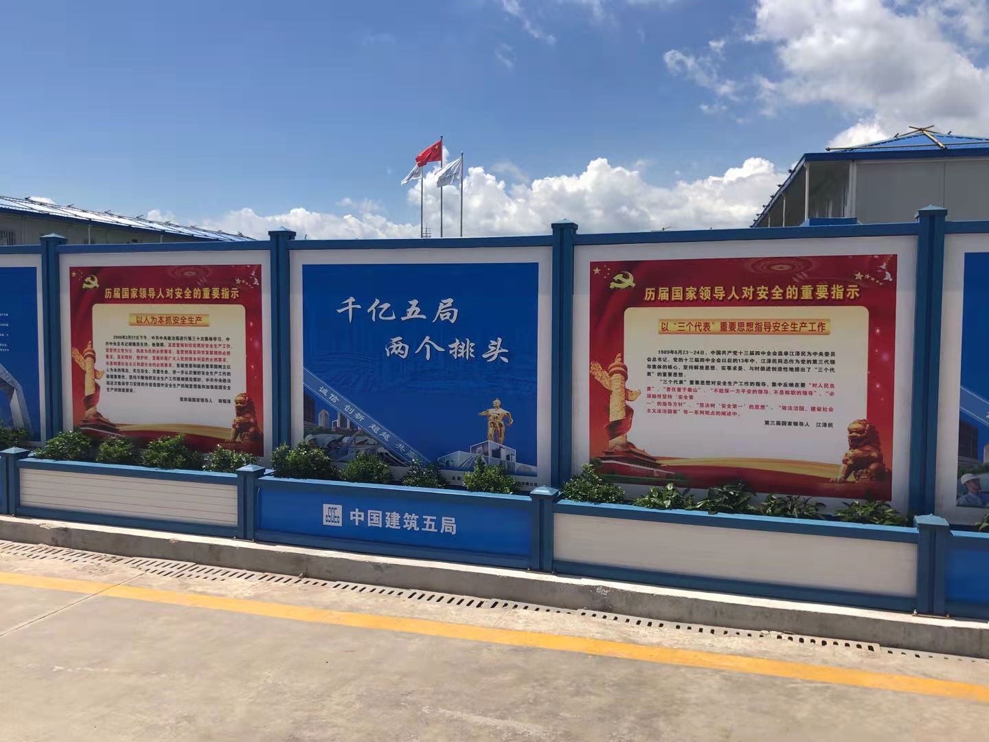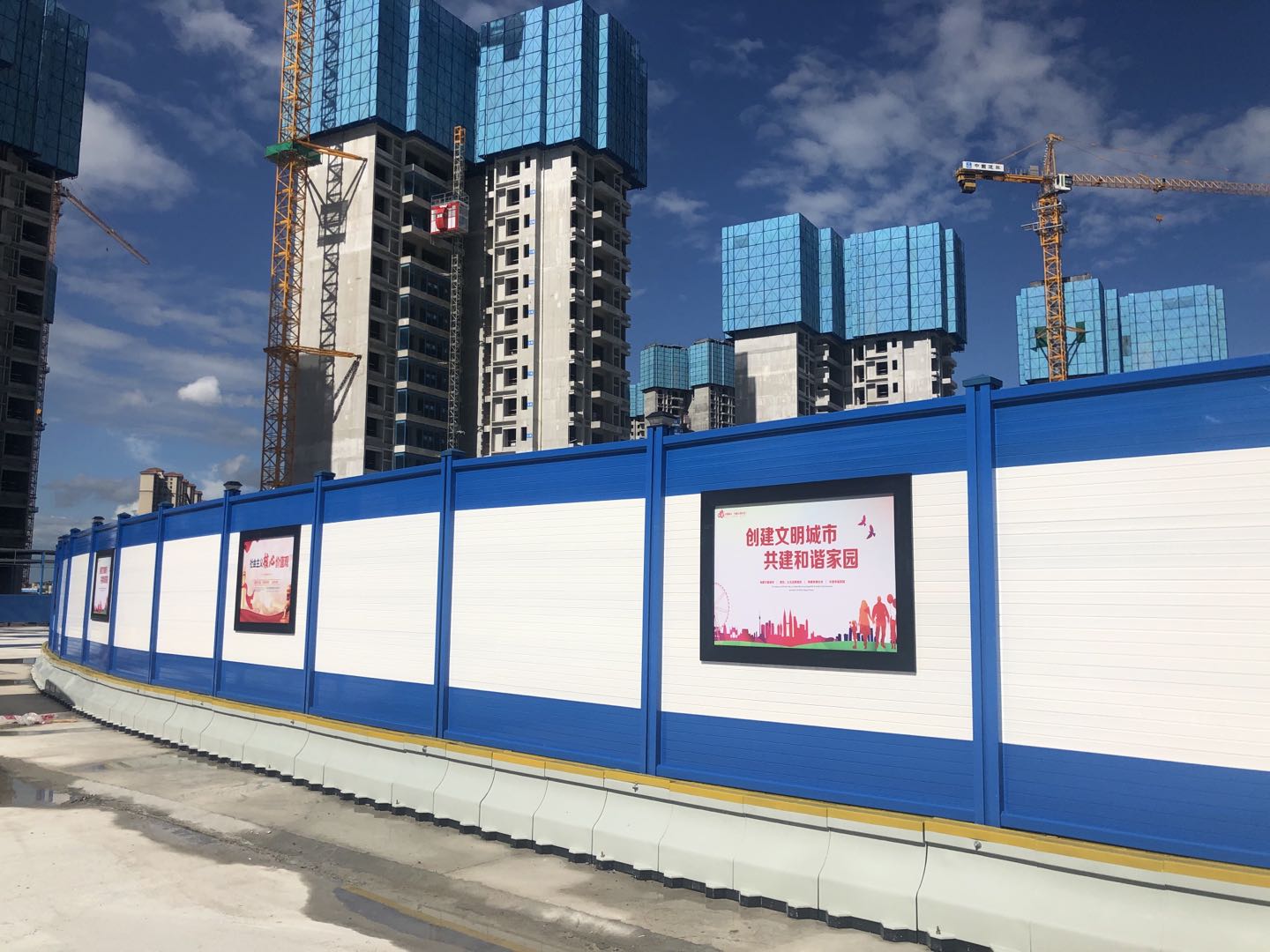 强风地段 - 若现场所处地势风力较大,或所在地位易受台风影响; 则围档安装时,根据现场条件,同一方向每隔8-10幅以多加立柱 的方式隔开墙体,设一漏风口以分解连体受风面;漏风口处立柱 的间隙根据项目实际要求调节,必要时可切割底座宽度