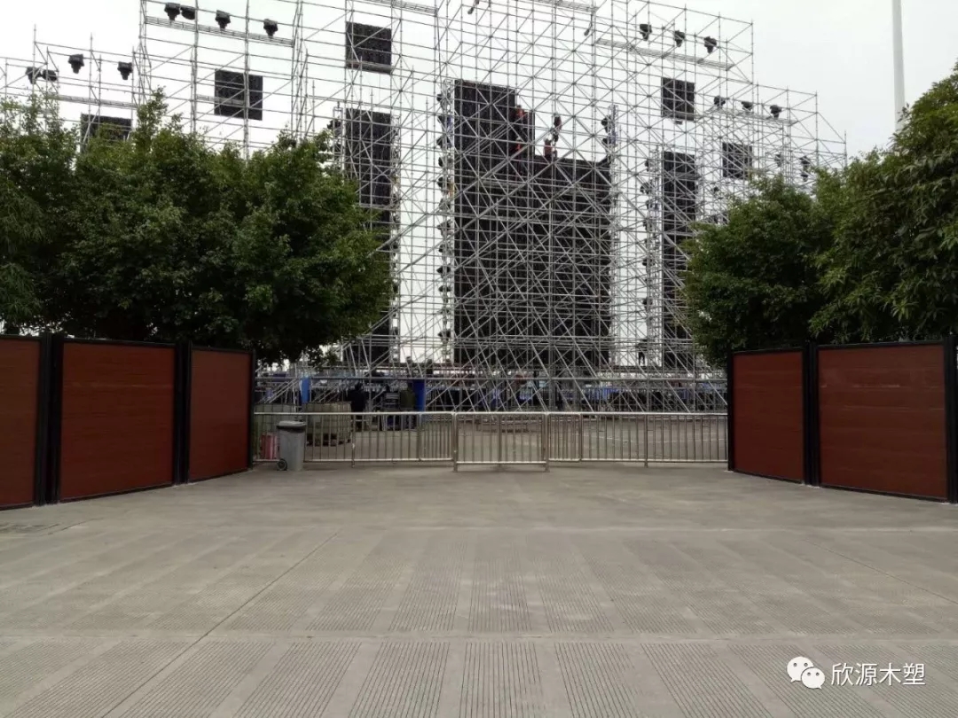 为了保证演唱会顺利开展,场地的准备也需要确保很多事项的万无一失,其中包括舞台的搭建,周围场地的围蔽,工程质量的安全可靠与否,直接关系到现场2万名观众的人身财产安全。在此特别鸣谢主办方对我司木塑围墙的肯定和信赖。